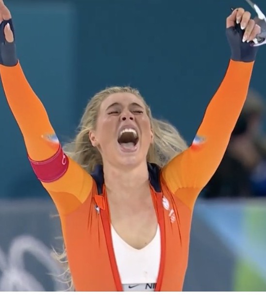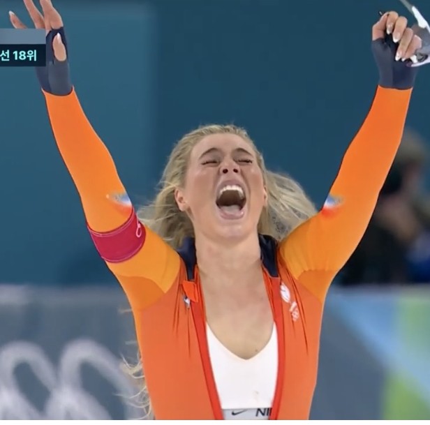 바로 네덜란드 스피드 스케이팅 스타 유타 레이르담의 금메달 세리머니입니다.