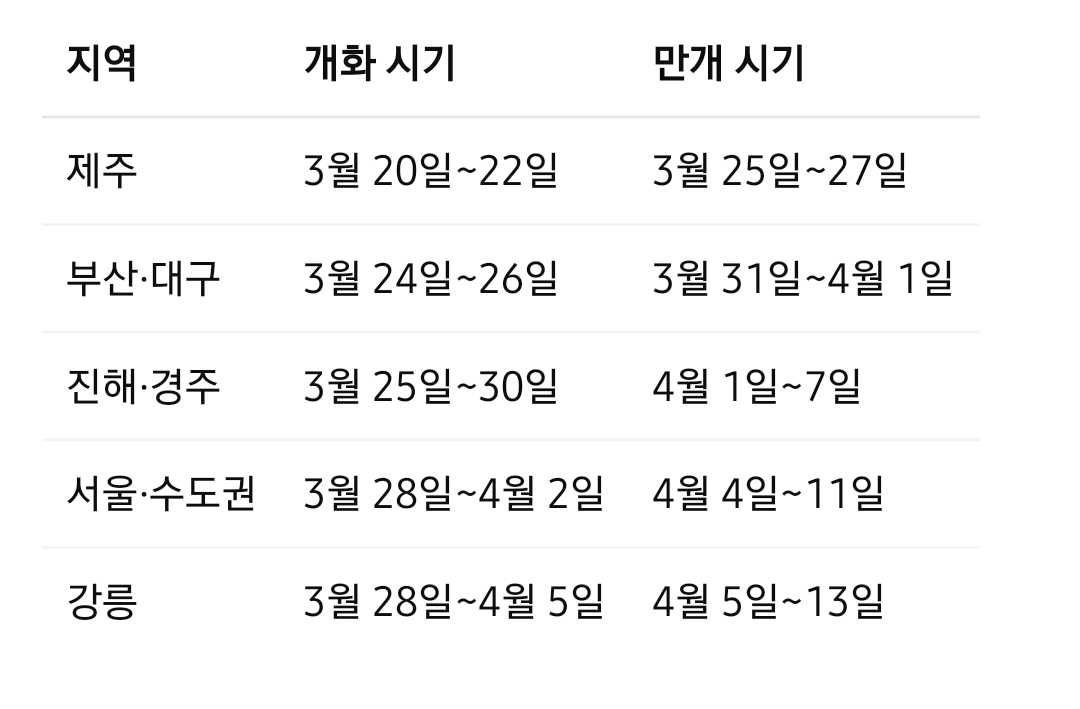 예시: 서울 개화 3월 30일 → 최고의 시기 4월 5일 전후